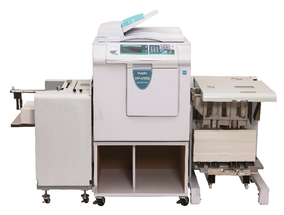 Профессионального дупликатор DP-U950 является единственной моделью на рынке с пневматической системой подачи листа. Дупликатор комплектуется компьютерным интерфейсом USB, сканером с обычной крышкой и печатным механизмом от Duplo U850 в стандартной комплектации.